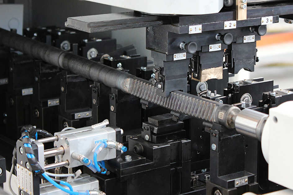 El tamaño de la máquina depende de la sección y longitud de la pieza. La máquina se puede equipar con sistemas de apoyo y punzones dedicados, ligados a las piezas con sección diferente. Para favorecer la eficacia del proceso, la máquina se completa con sistemas de set up automático. Añadiendo: